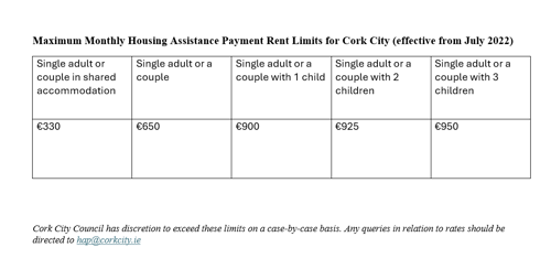 HAP rates for other Local Authorities are available on the Citizens Information Website here