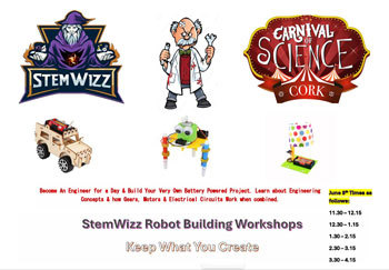 Stemwizz are a team of Moms and Dads who see a need for young people to develop their own learning style. With a a background in Digital Technology, Art & Design & Youth Work. Stemwizz believe that all young people should get the opportunity to explore STEM projects in a fun & educational way. Choose your kit and bring to life your very own mini-bot to take home.