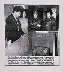 (Above) Museum display in the window of the Cork Examiner Offices, 1942. 'Taispeantas Starineamail'.