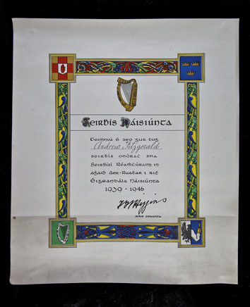 (Above) Certificate of national service, attributed to Andrew Fitzgerald 1946