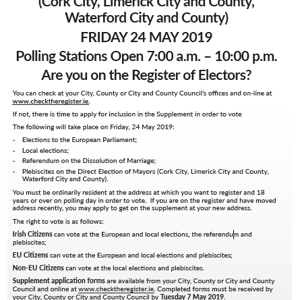 A poll for the election of members for the following local electoral areas will be taken on Friday, 24th of May 2019, between the hours of 7.00 a.m. and 10.00p.m.
