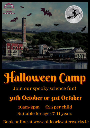 Join the spooky science fun at Old Cork Waterworks Experience. Our one day hands on camp will explore the world of spooky bats and creepy crawlies with fun creations to take home. Suitable for children aged 7-10 years. Two dates are available, choose from Thursday 30th or Friday 31st October running from 10.00-14.00 each day.