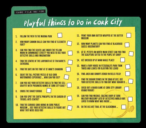 While you are trying to find Detective Bláithín, why not complete the 20 Playful Things to Do in Cork city, you'll find these on the back of the map.