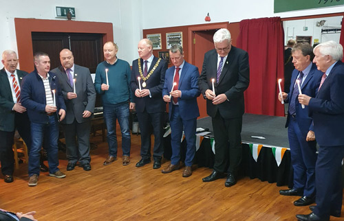 The guest party was led into the hall by piper Norman O’Rourke to the musical backdrop of Green Fields of Ireland. Baritone Denis Lane performed songs from the Mac Curtain era including Ah Sweet Mystery of Life, Let me Call You Sweetheart and When Irish Eyes Are Smiling. The Glen Hurling Male Voice Choir performed a rendition of Only Our Rivers Run Free, Ireland, Mother Ireland and the Foggy Dew.
