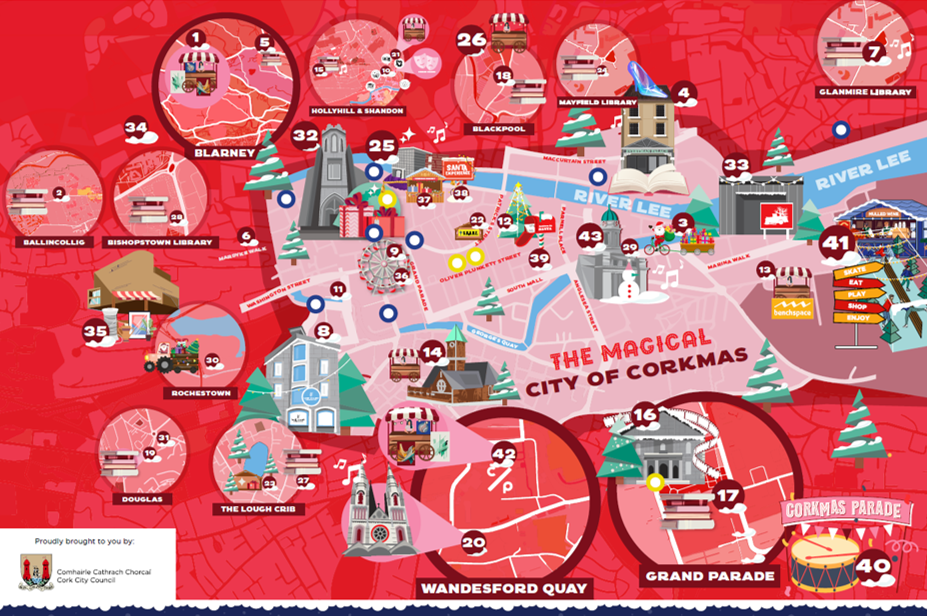 Click on the image below for a map of Corkmas across the city - complete with hotlinks for more info & booking