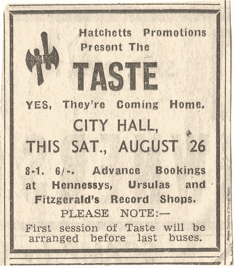 Rory Gallagher from this point forward would go on to play over 20 times throughout his career at Cork City Hall, possibly more than any other music Artist.