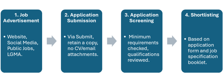 - All applications are screened to ensure candidates meet the minimum requirements outlined in the job specification.