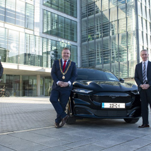The Lord Mayor of Cork, Cllr. Colm Kelleher was today presented with the 2022 Lord Mayoral car, a fully-electric Ford Mustang Mach-E Standard Range AWD, by John Manning of Henry Ford & Son Ltd.