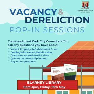 Cork City Council are holding a series of public drop-in Vacancy & Dereliction sessions this year aimed at informing members of the public on the supports available to refurbish vacant and derelict properties, including the popular Vacant Property Refurbishment Grant.
