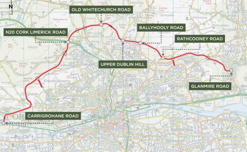 The proposed new road is 14 kilometres long, from the Carrigrohane Road at its western end to Glanmire in the east, crossing the northern side of Cork City via Hollyhill, Dublin Hill and Banduff. It is a key element to delivering the Cork Metropolitan Area Transport Strategy (CMATS), which was published in 2020 and identified the need for this east-west route on the north side of Cork City.