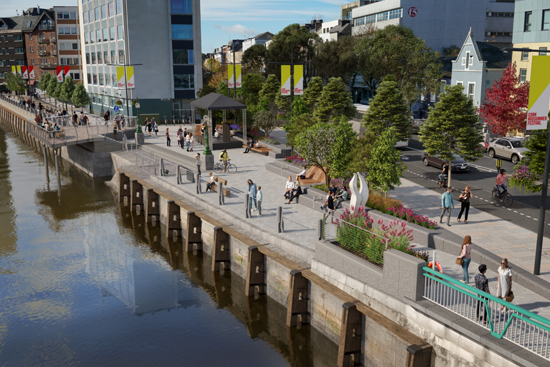 - A new 3-metre-wide riverside promenade along the length of Morrison’s Quay and Father Mathew Quay;